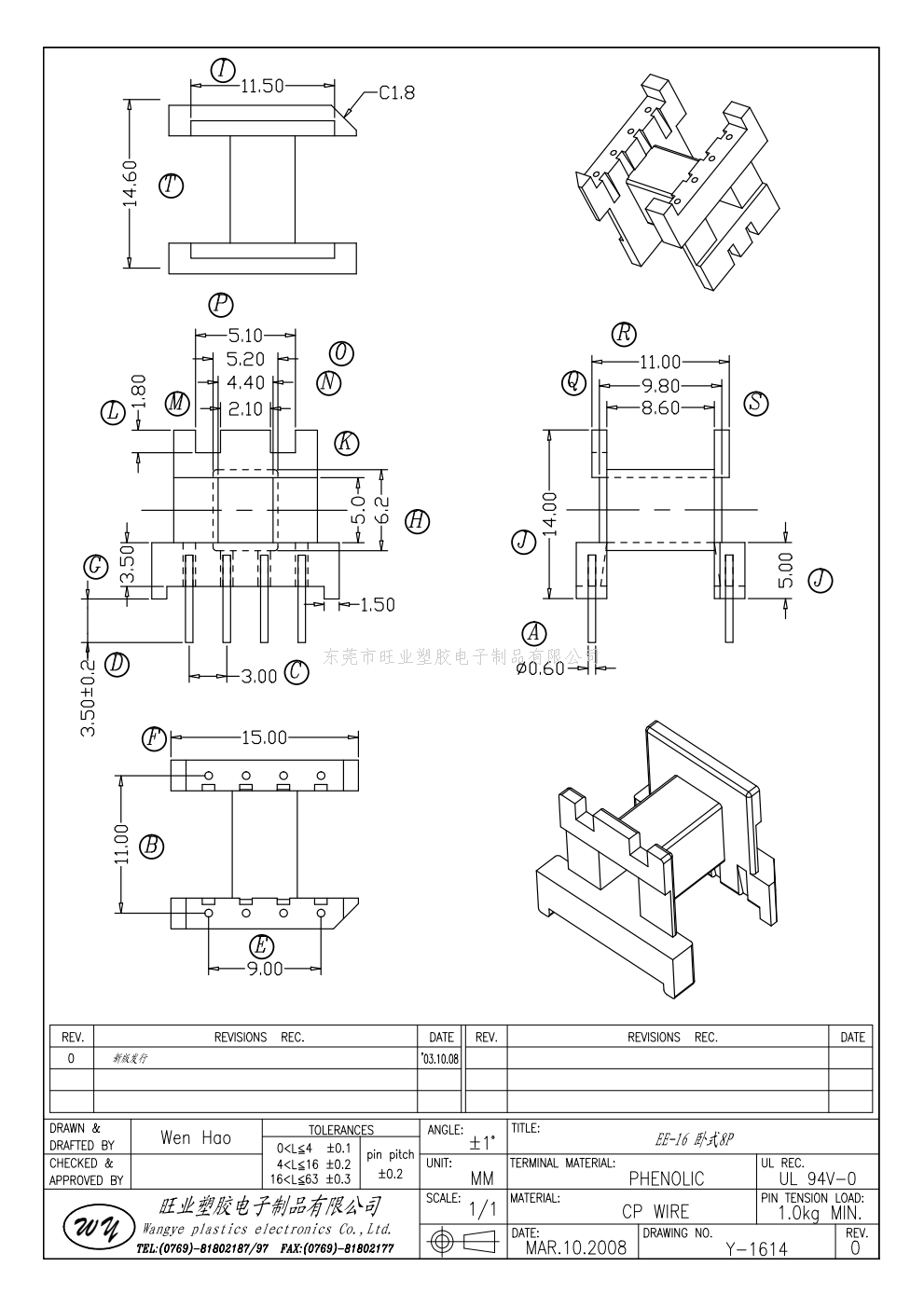 Y-1612-1/EE16卧式(5+5P)