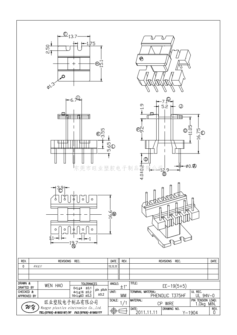 Y-1904/EE19立式(5+5P)